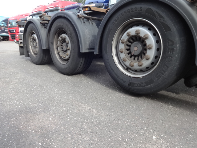 Der Auflieger ist dem Alter entsprechend ok mit diversern Gebrauchs- und Abnutzungsspuren. SAF-Achsen. Liftachse. Luftfederung. Scheibenbremsen. Länge ausziehbar von 10960 auf 12560 mm. Bereifung 385/55R22,5 mit einem Profil von 30 - 70%.