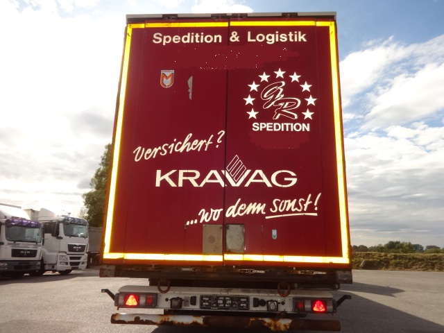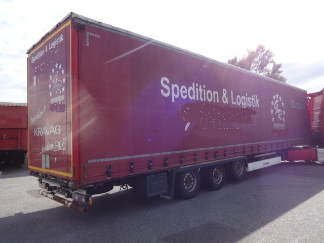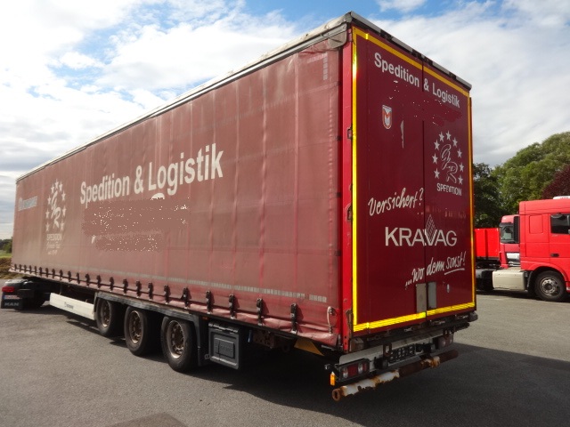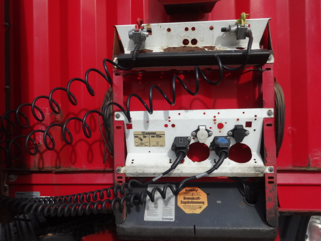 Der Auflieger ist dem Alter entsprechend ok mit diversen Gebrauchs-Abnutzung- und Verschleißspuren. MB-Achsen. Liftachse, Luftfederung, Scheibenbremsen, Edscher, 2 Staukästen, Reserverad. Bereifung 435/20R19,5 mit einem Profil von 30 - 70%.