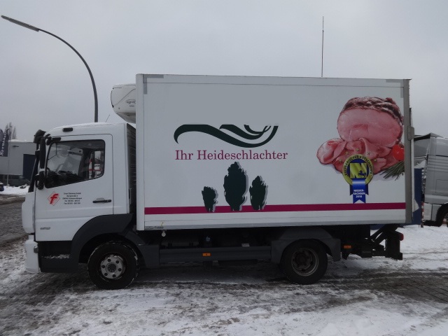 Kofferaufbau mit Kühlaggregat Carrier Xasrios 500, Seitentür und Palfinger Ladebordwand/1500kg.